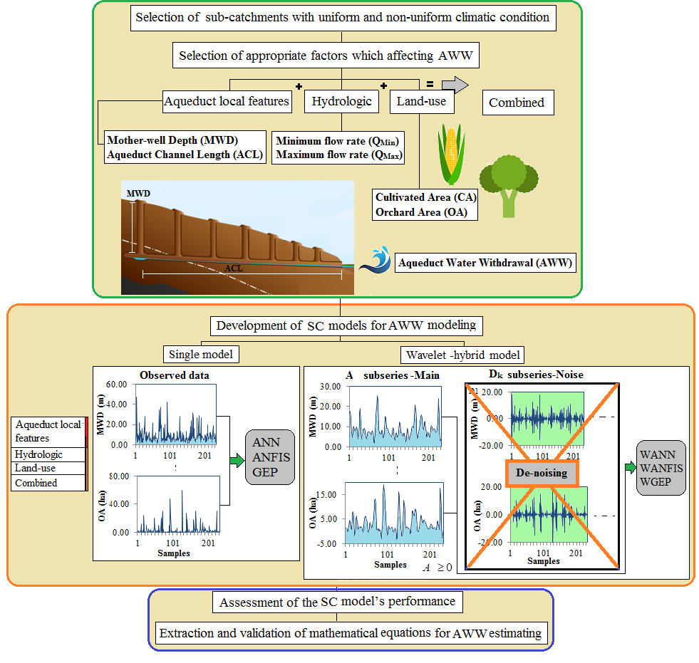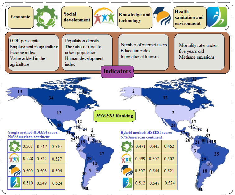 Development of Hydro-social-economic-environmental Sustainability Index (HSEESI) in Integrated Water Resources Management Abstract Sustainable development is a grand challenge of the present century, with tremendous direct and indirect implications for a range of social, economic, and environmental factors. This research proposes a water-centric framework for evaluating ‘relative’ sustainability of the status quo in a country via a new “hydro-social-economic-environmental sustainability index” (HSEESI). We test this framework across 35 countries of American Continent using national-scale surveyed data for the 2005-2017 periods. HSEESI possesses four dimensions, namely economic, social development, knowledge and technology, and health-sanitation and environment, and 12 related indicators for characterizing these dimensions. Based on the developed HSEESI scores, we assess the linkages between water resources and social-economic-environmental systems at the country level, using single and hybrid-artificial intelligence-Gene Expression Programming (GEP) methods. The former method involves all the indicators, while the latter focuses only on the most effective indicators. Further, we aggregate these analyses at three spatial scales, including American continent, North American countries, and South American countries. Our analyses show that both methods lead to approximate similar results, but the latter is preferred for larger scales as it is more cost effective. Overall, results indicate that the status of water resources in North America is relatively sustainable, whereas in South America, it is relatively unsustainable. Importantly, social development, health-sanitation, and environmental dimensions, in both North and South American continents seem to have a relatively unsustainable status, indicating that water resources systems may not have enough capacity to meet the needs of those dimensions. At the country level, our analyses show that water resources systems of Uruguay, Guyana, and Venezuela may face the highest relative unsustainability, across economic, social development, and health-sanitation and environment dimensions. The approach and the framework developed in this study can be applied in other regions around the world and with a more detailed representation of intra-country sustainability issues. It can inform managers and policymakers for sustainable planning and developing water resources projects across scales. Keywords: Artificial intelligence; Social-economic; Sustainability Index, Water management.